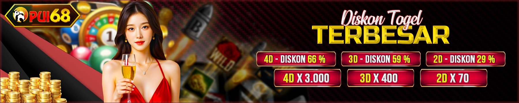1. Diskon Togel : 2D = 29% | 3D = 59% | 4D = 66%