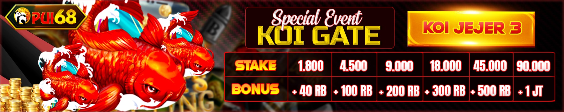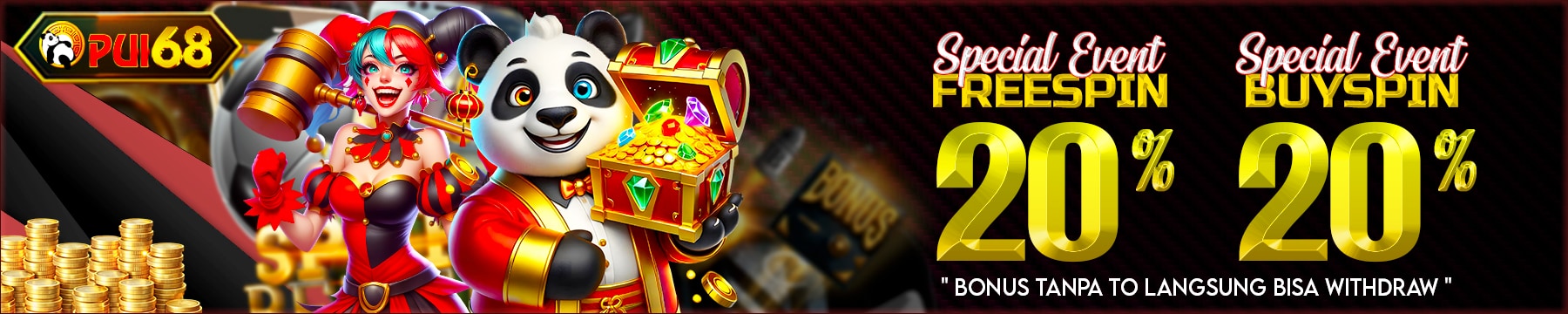1. Event berlaku untuk semua member di PUI68 yang TIDAK MENGAMBIL PROMO BONUS LAINNYA
